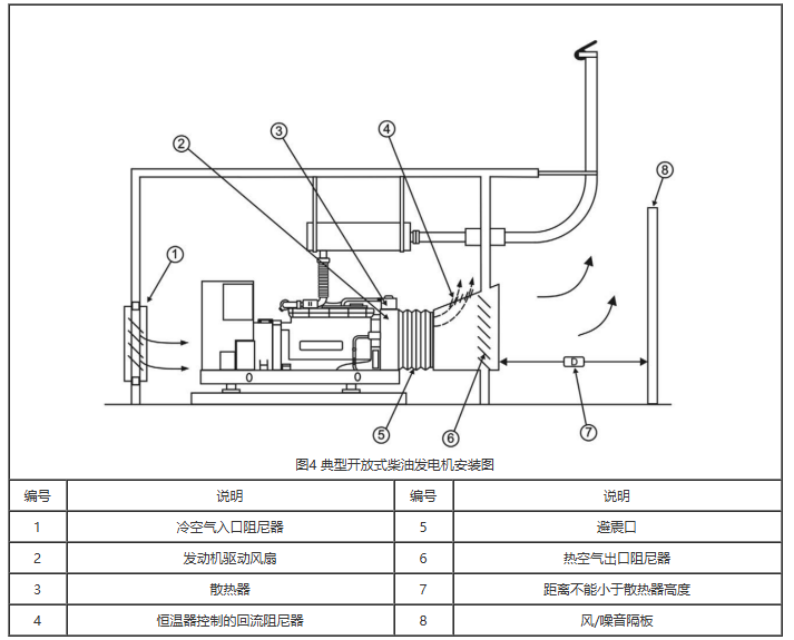 減振器或電動百葉窗可以將柴油發電機組及設備室與環境因素防護,其打開和關閉操作應當由柴油發電機組的實時控制。