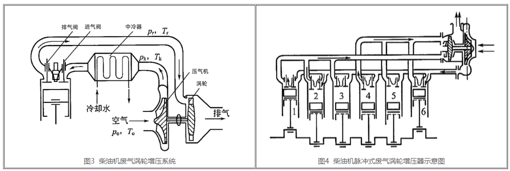 (2)廢氣渦輪增壓器按是不是運(yùn)用柴油機(jī)發(fā)動機(jī)排氣管內(nèi)廢氣脈沖能量,可以分為穩(wěn)壓式或脈沖式二種增壓機(jī)。